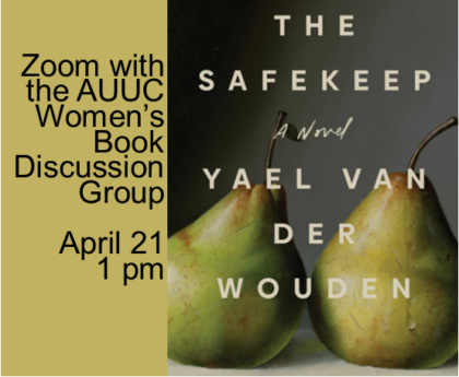 The Women’s Book Discussion Group will meet via Zoom on April 21 to discuss The Safekeep: A Novel by Yael Van der Wouden. Members of the group will receive a Zoom invitation before the meeting.