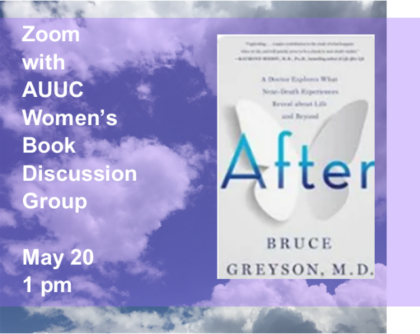 The Women’s Book Discussion Group will meet via Zoom 5/20/2025 to discuss After: A Doctor Explores What Near-Death Experiences Reveal About Life and Beyond by Bruce Greyson. Members of the group will receive a Zoom invitation before the meeting.